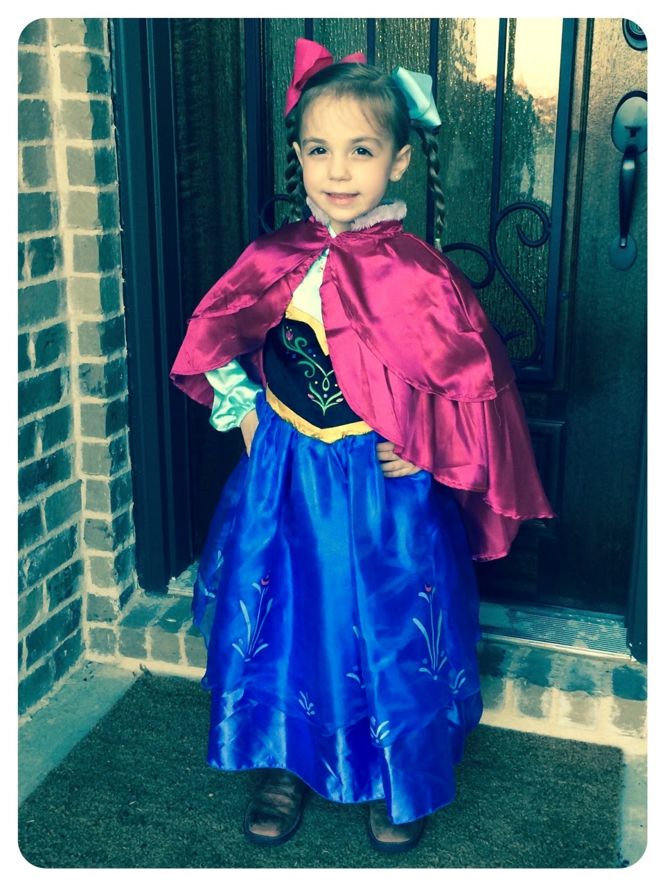 Allyson wanted to be Princess Anna from Frozen. While I have one that is all about pirates, I have one that is all about princesses! And I wouldn't have it any other way; I just love her sweet spirit. She ended up hanging up trick-or-treating half way through the night and passed candy out with Mom at the house. We sat on the front porch together and greeted our trick-or-treaters.